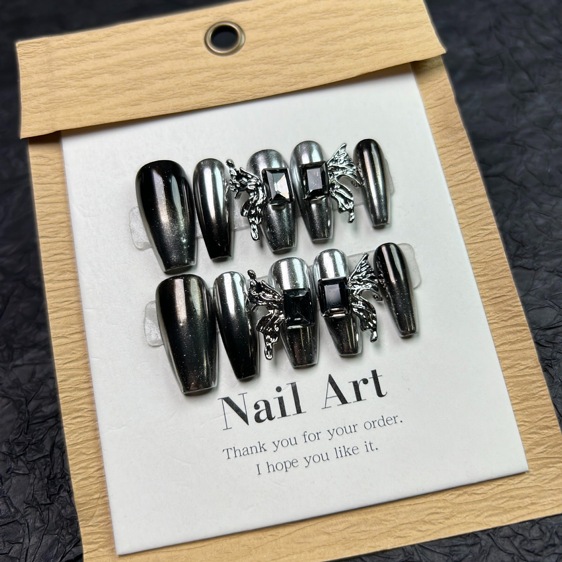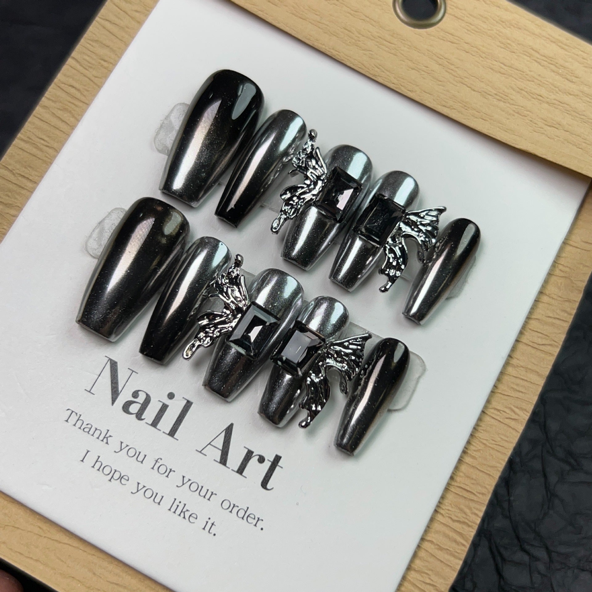 5, place the sticky tab on your nail and then press the press on nails down starting from the cuticle and working towards the tip press for 30 second.
