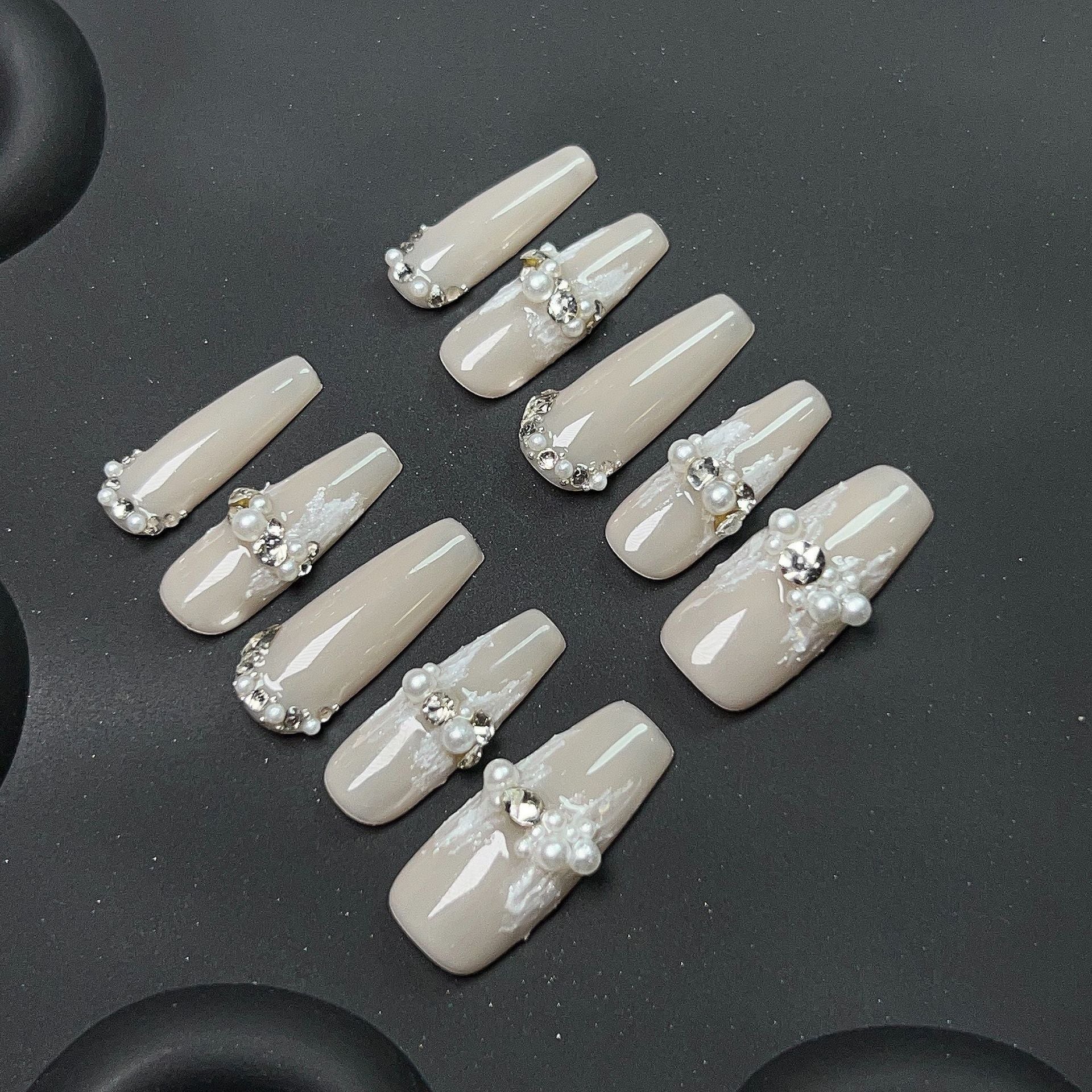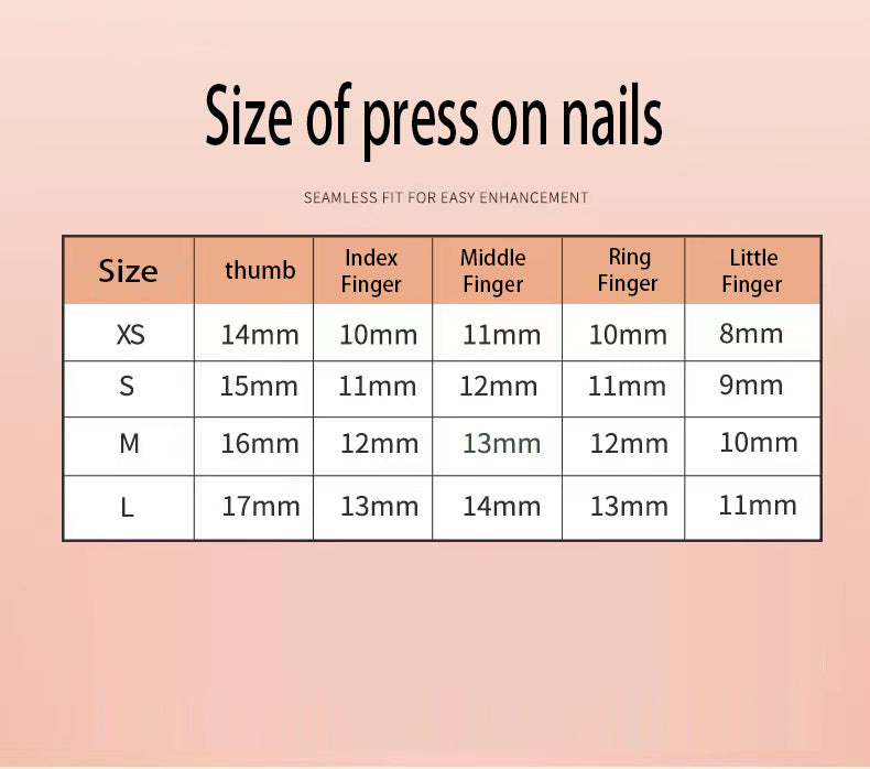 5, place the sticky tab on your nail and then press the press on nails down starting from the cuticle and working towards the tip press for 30 second.