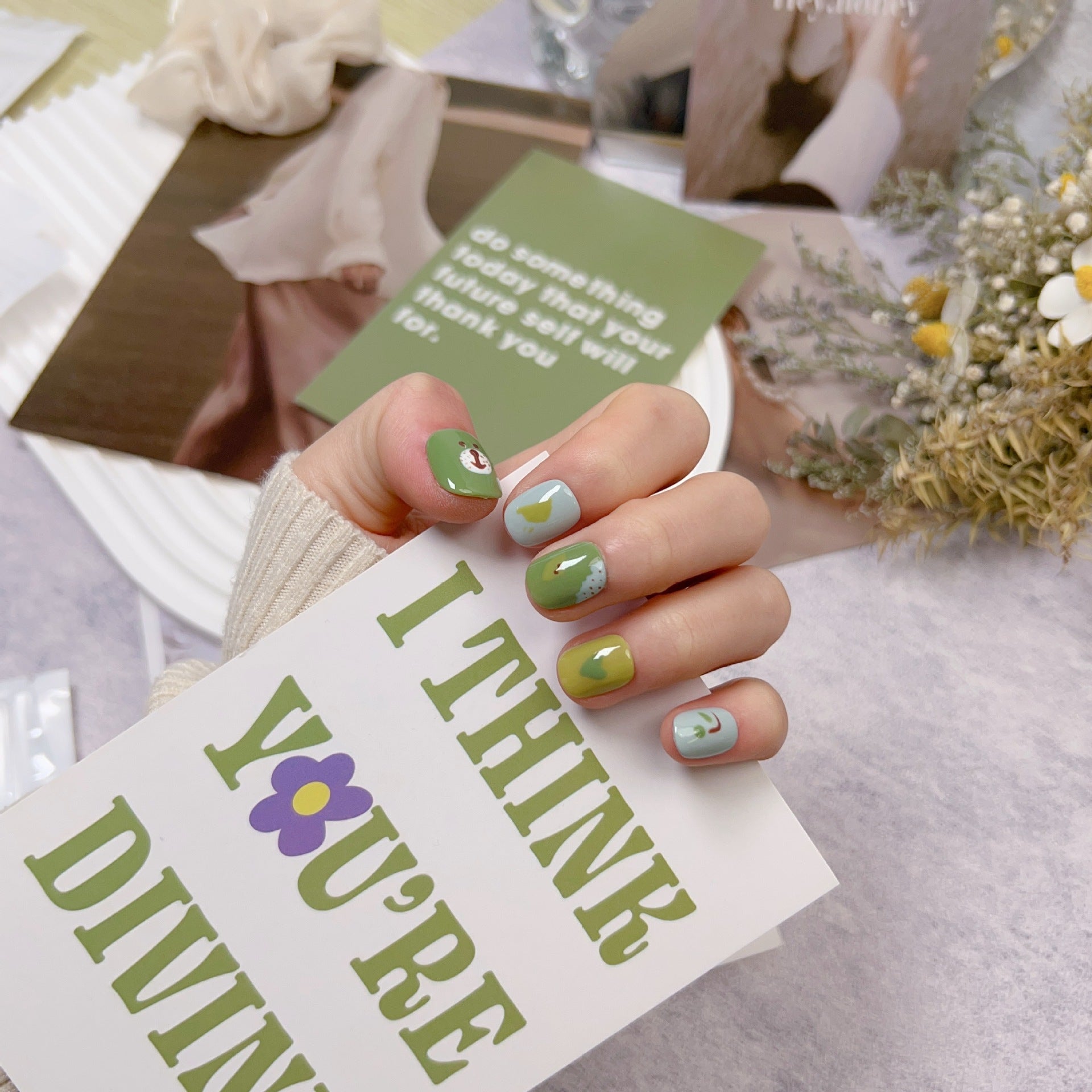 5, place the sticky tab on your nail and then press the press on nails down starting from the cuticle and working towards the tip press for 30 second.