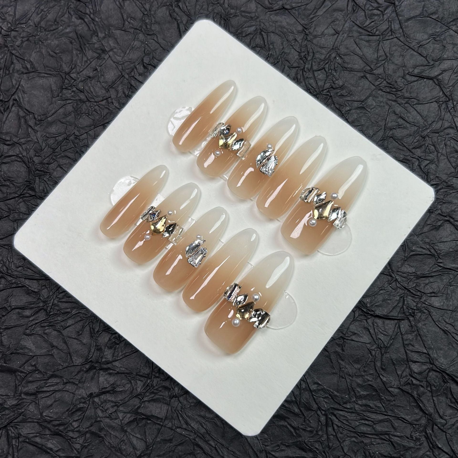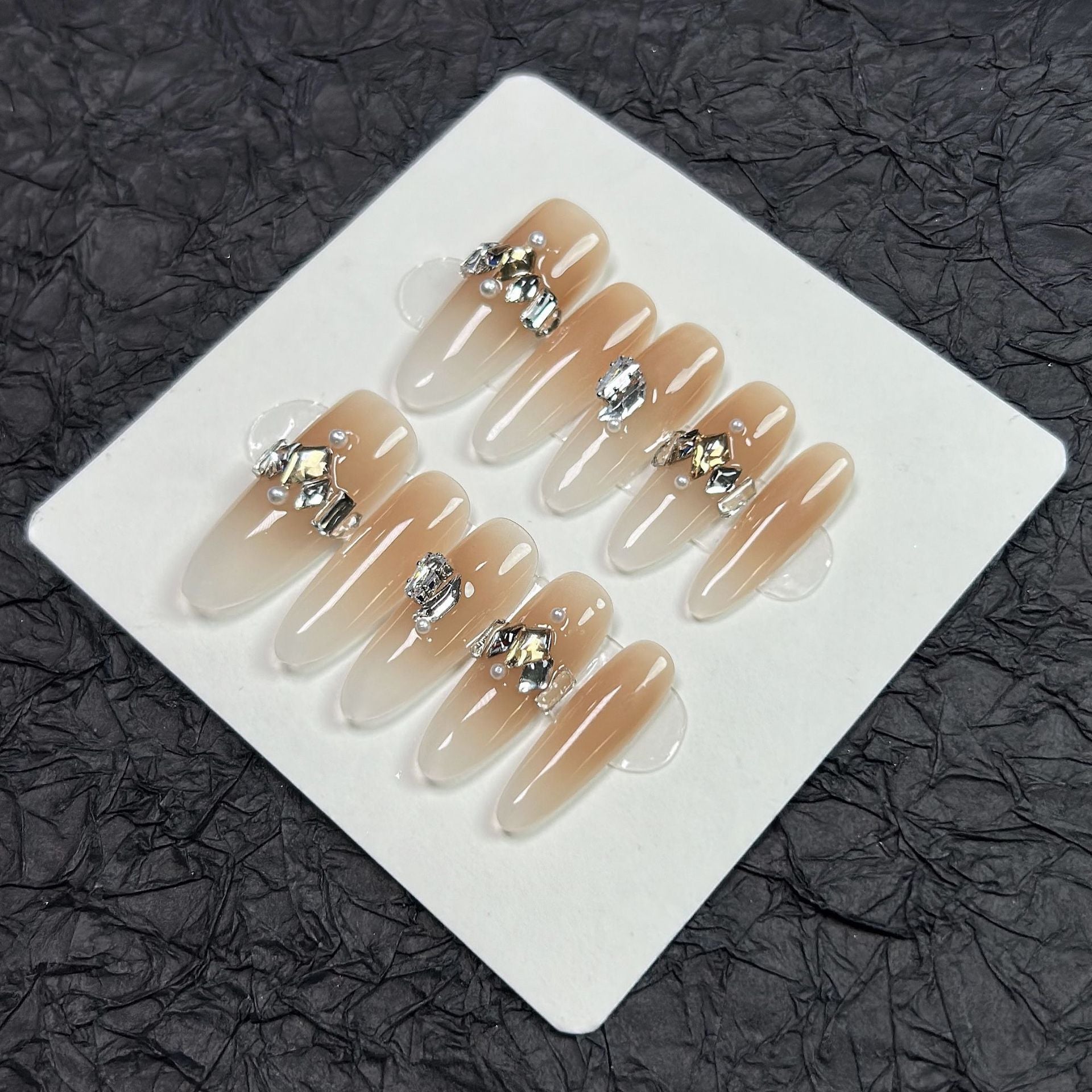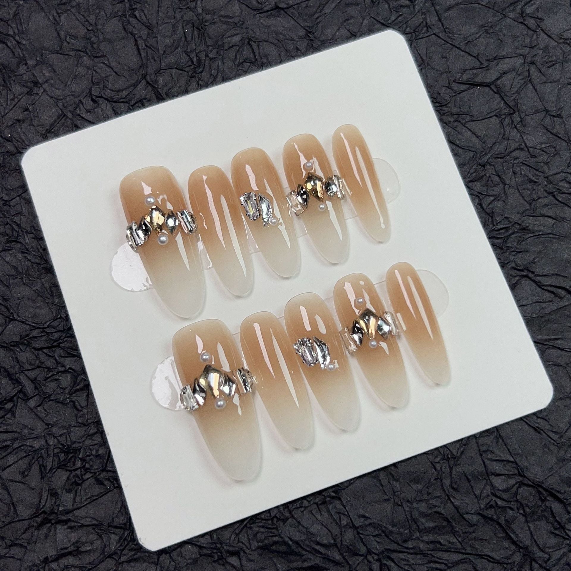 5, place the sticky tab on your nail and then press the press on nails down starting from the cuticle and working towards the tip press for 30 second.