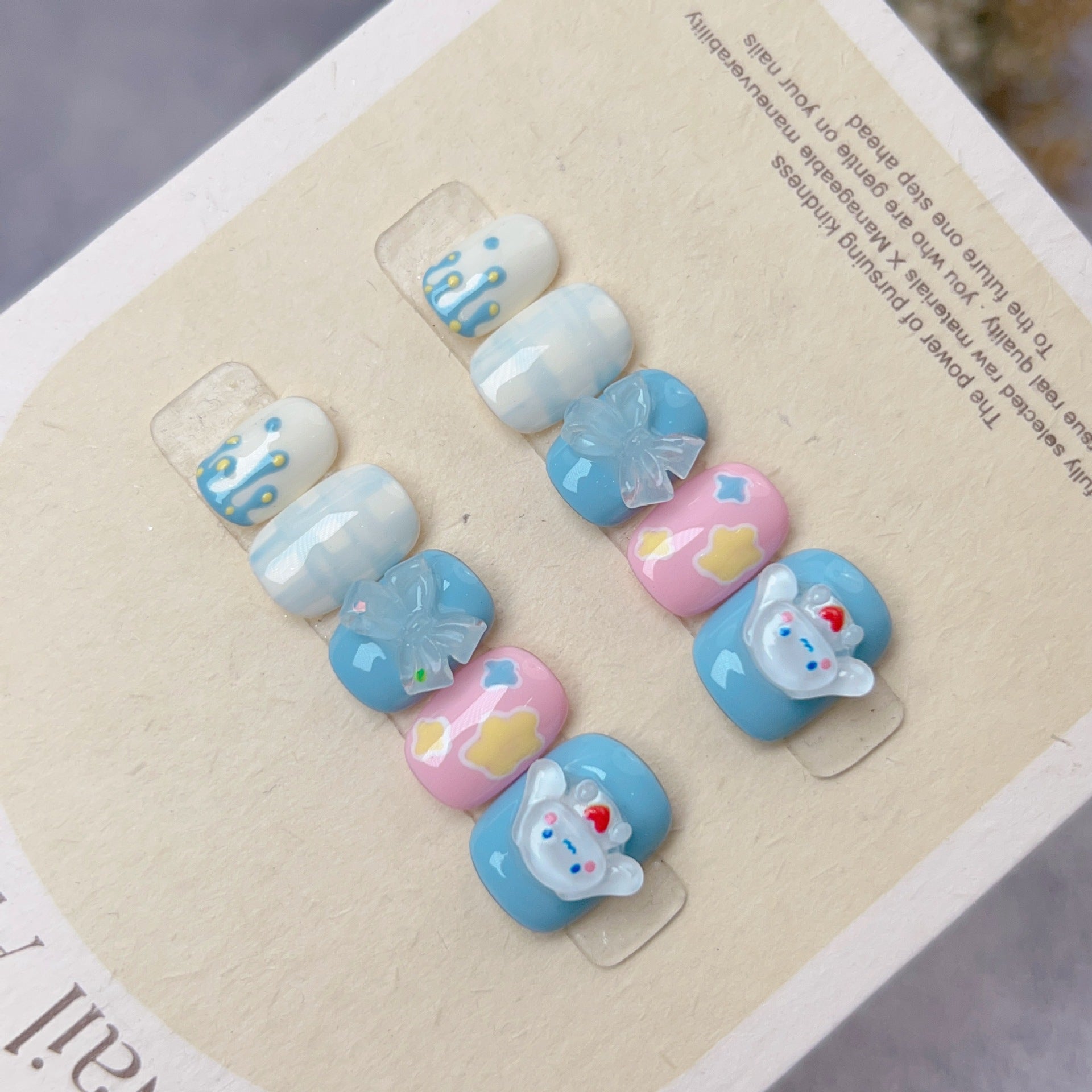 5, place the sticky tab on your nail and then press the press on nails down starting from the cuticle and working towards the tip press for 30 second.